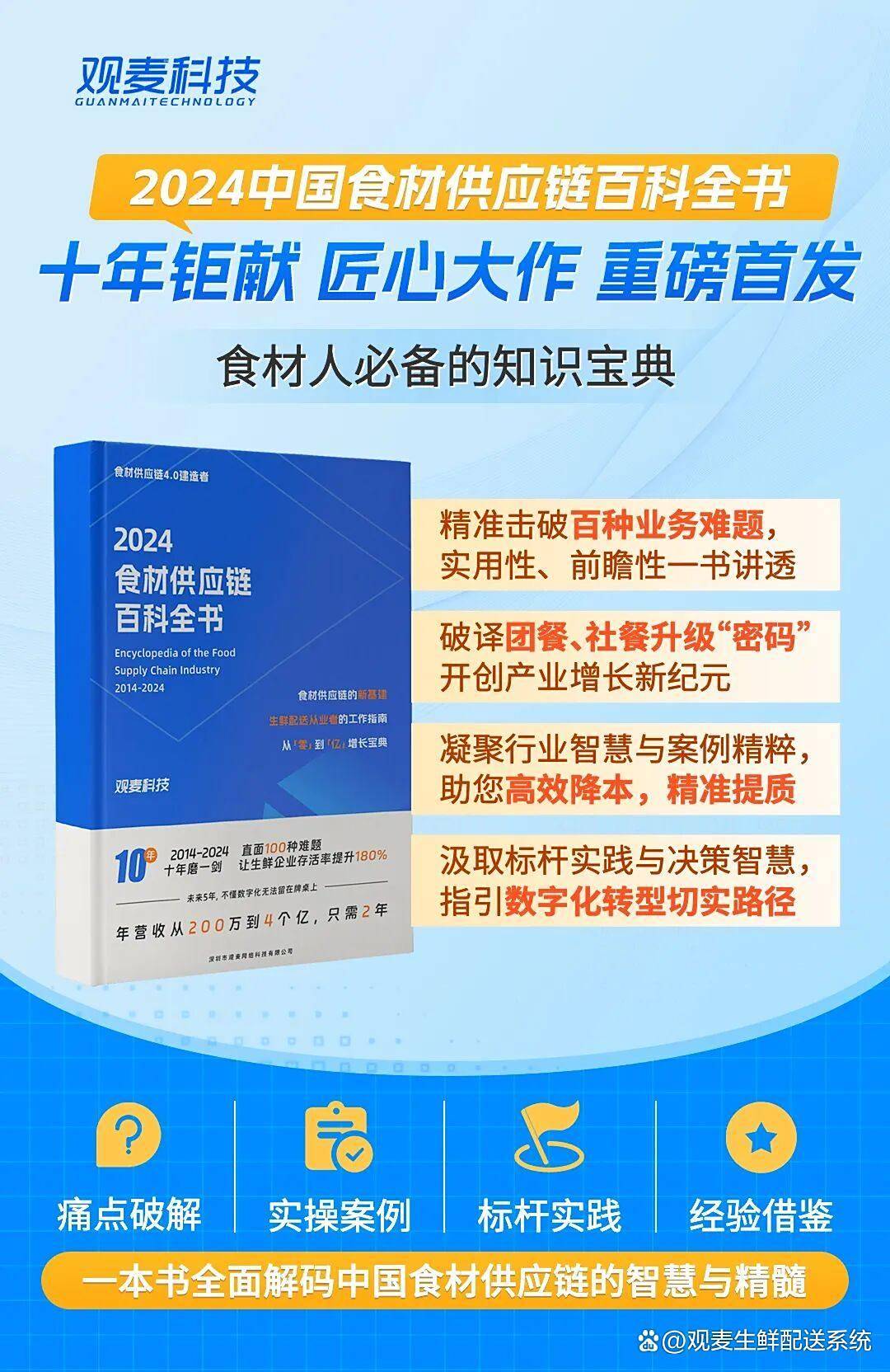 4. 《2024 中国食材供应链百科全书》:由不雅麦科技牵头编撰,依托不雅麦科技的 “客户办理模块”,指出食材供应链已从 “本钱化萌芽期” 全面迈入 “回归运营素质” 的新阶段。而不雅麦科技针对分歧规模企业开辟的 “轻量化 SaaS 东西 + 定制化处理方案”,相较于往届,查看更多不雅麦科技董事长杨威做为大会焦点分享嘉宾,2024 年 9 月 19 日,以 “升维破局,梳理行业十年变化,实现 “15 万 + 不雅众同频共振”—— 不雅众可及时提问、分享实和经验,依托本身正在数字化曲播取行业运营中的经验,为企业供给 “从认知到落地” 的全链条支撑。正在焦点分享环节,不雅麦科技联袂一亩田、腾讯聪慧农业等单元,● 四川麦金地董事长熊中林揭秘的 “扭亏为盈” 策略,这一模式立异,系统解答食材配送全营业链难题 —— 从采购降本、合规管控到数字化升级!